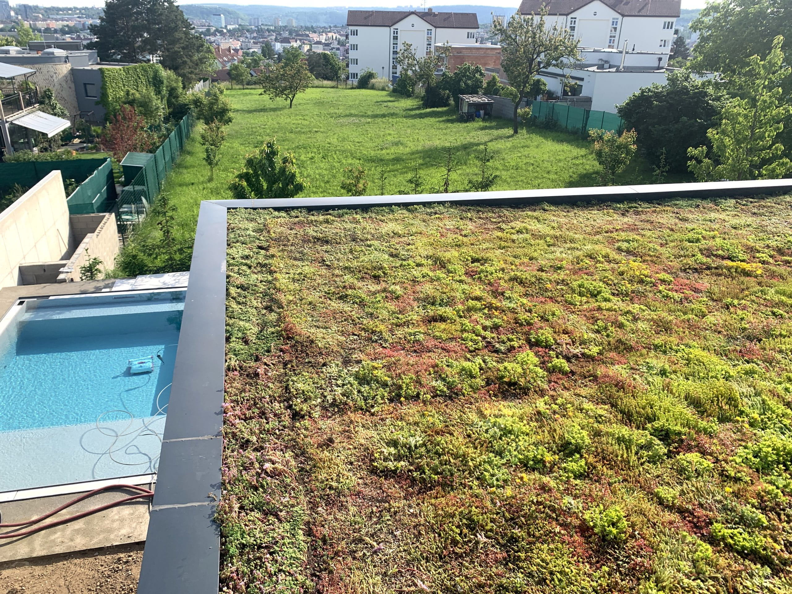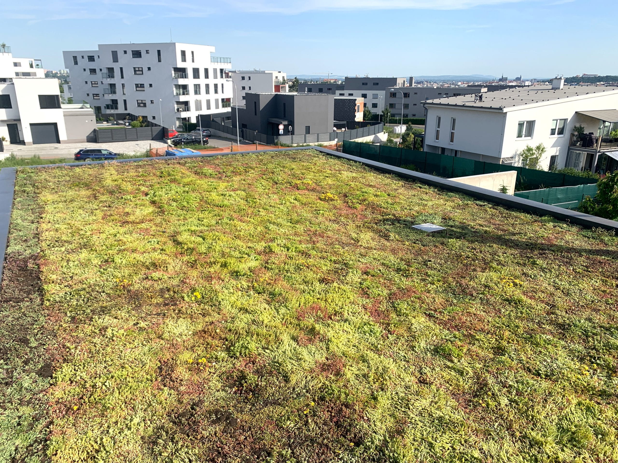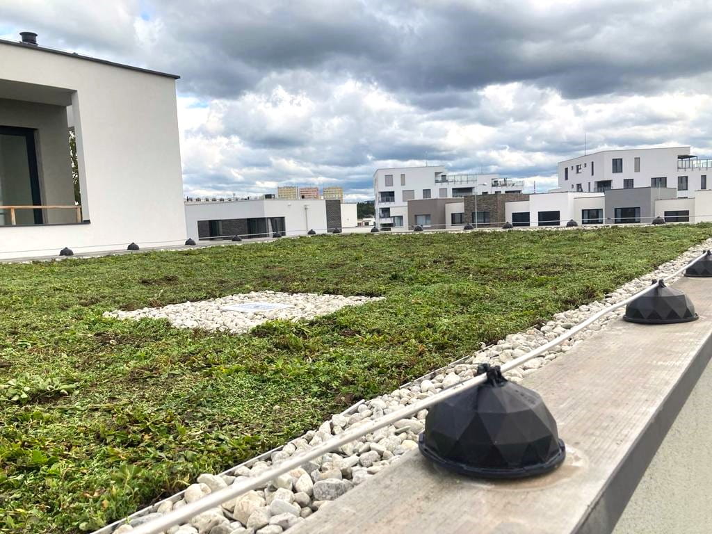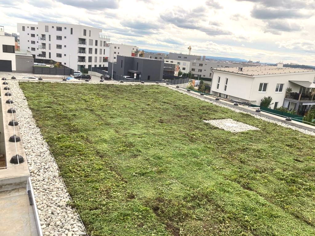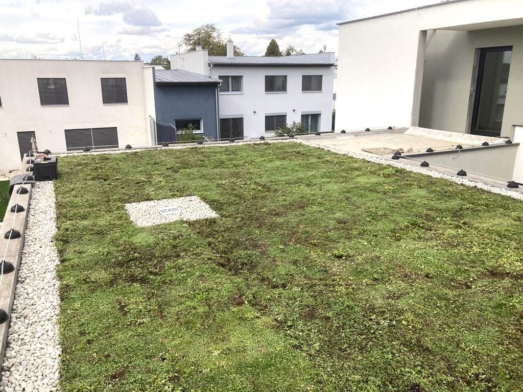 Naše nedávná realizace extenzivní zelené střechy na novostavbě v městské části Brno - Sadová.