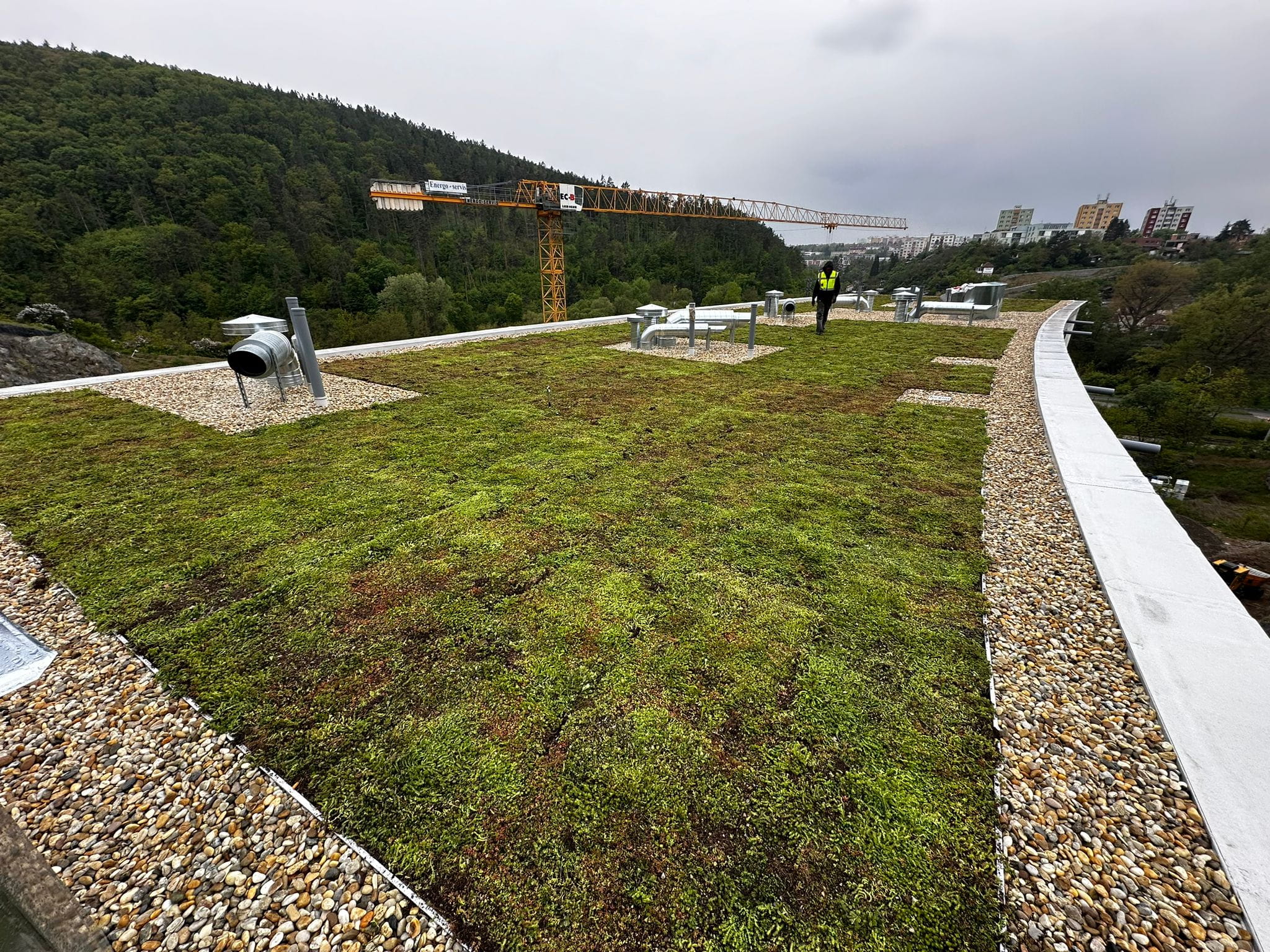 Zelená střecha na unikátním rezidenčním projektu bytového domu DIORIT byla vybudována ve spolupráci se společností MORAVOSTAV Brno, a.s. stavební společnost.