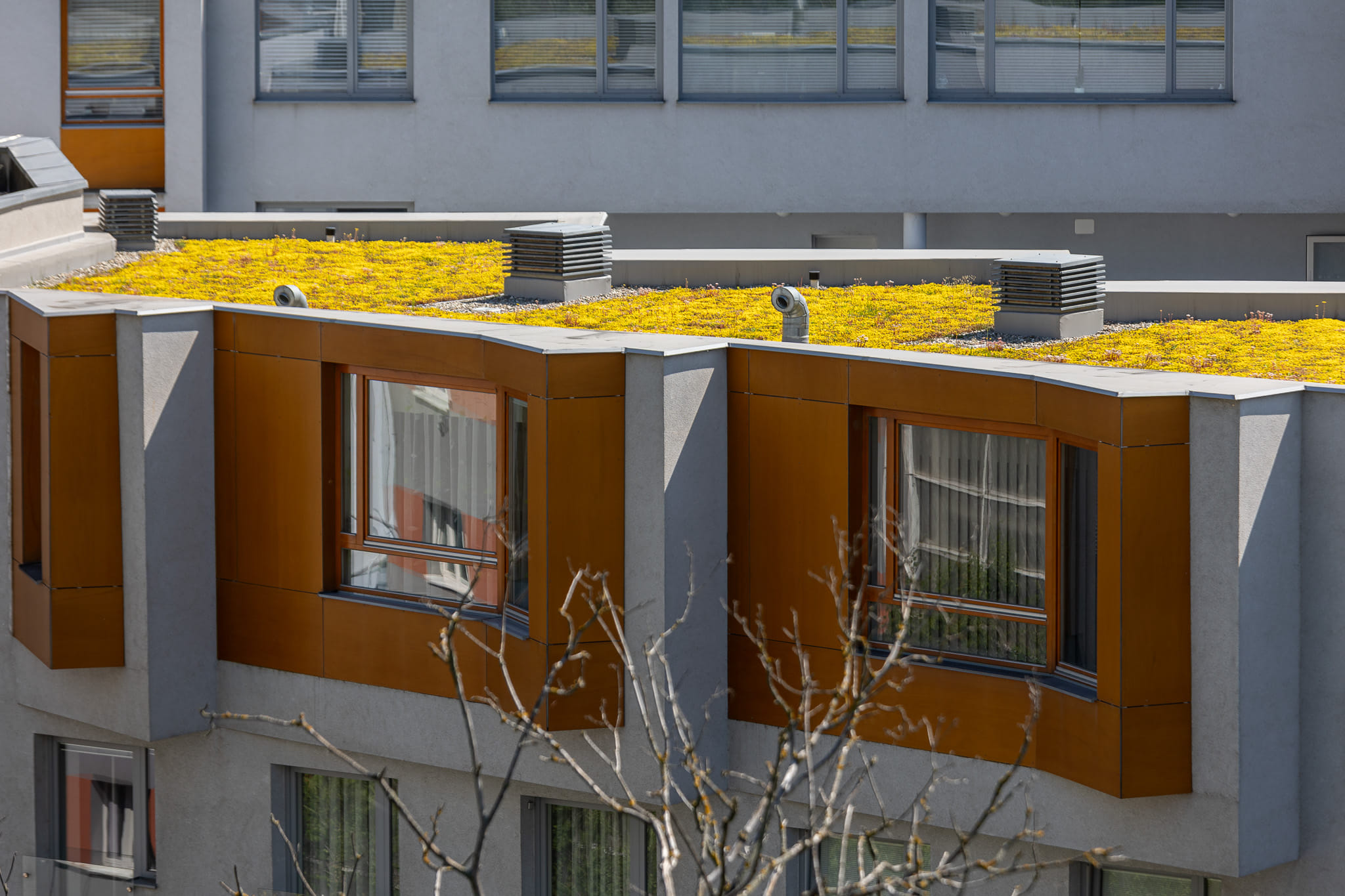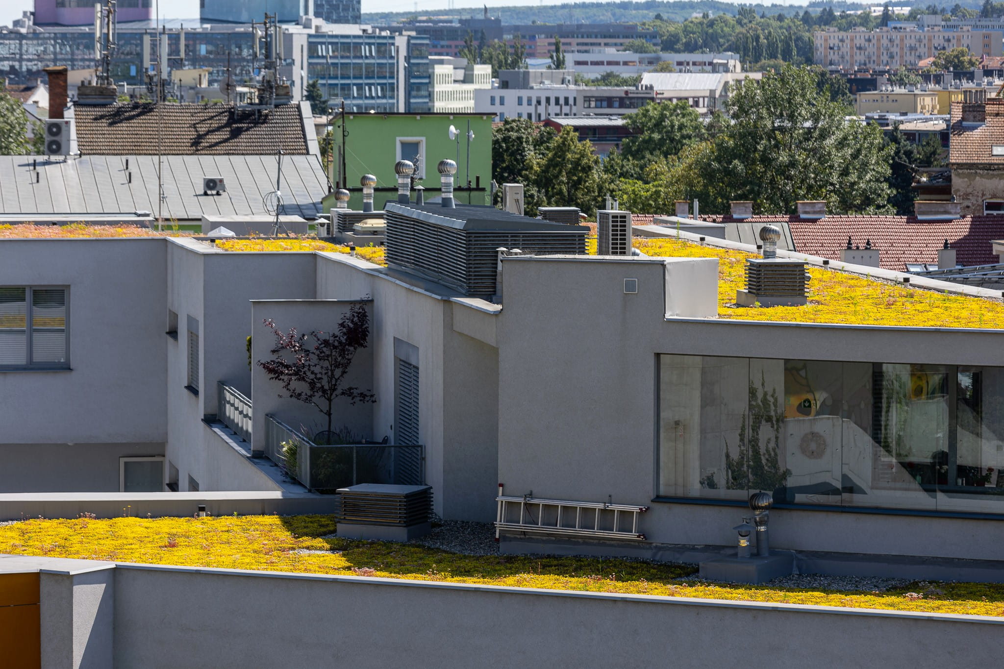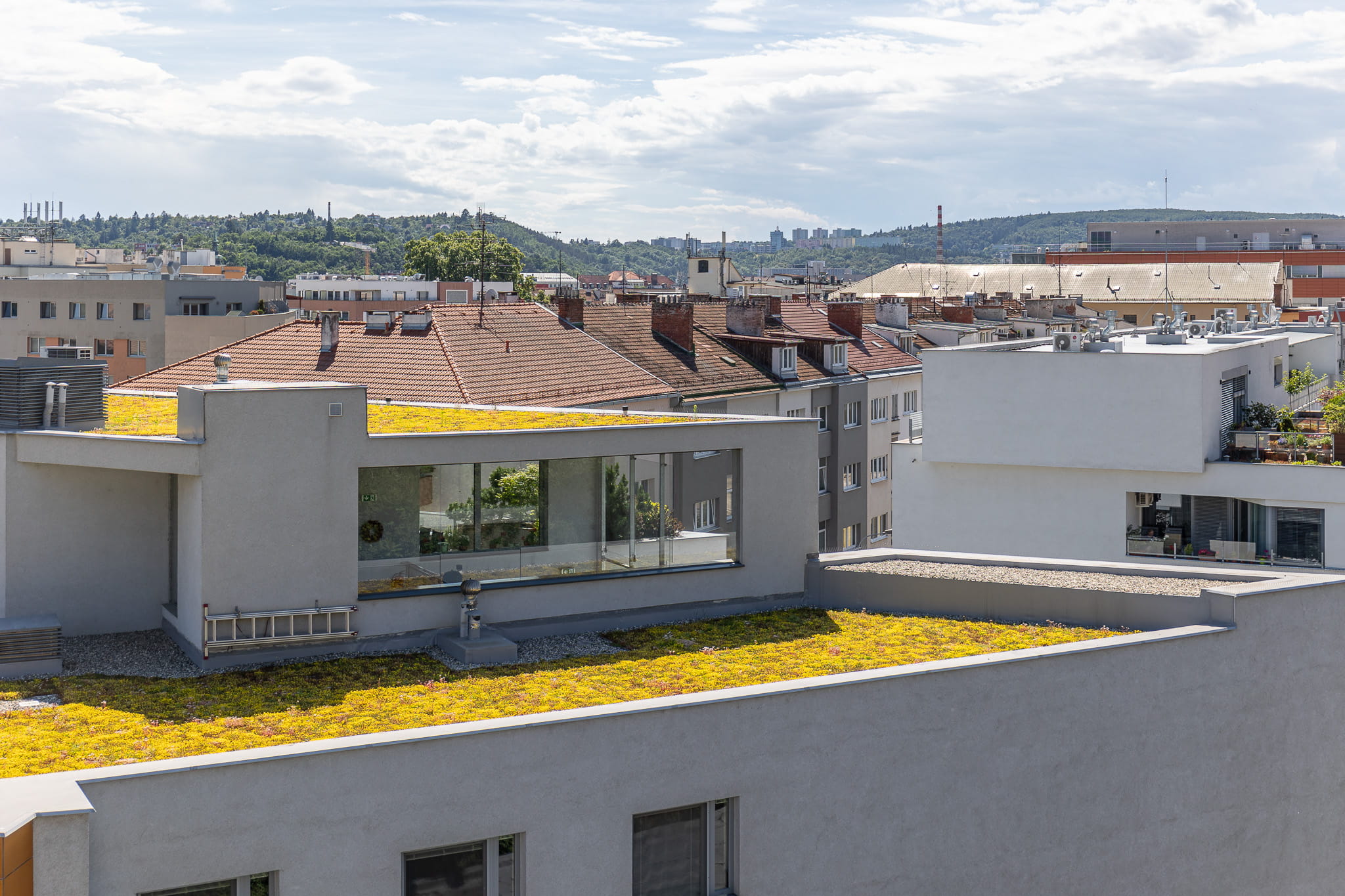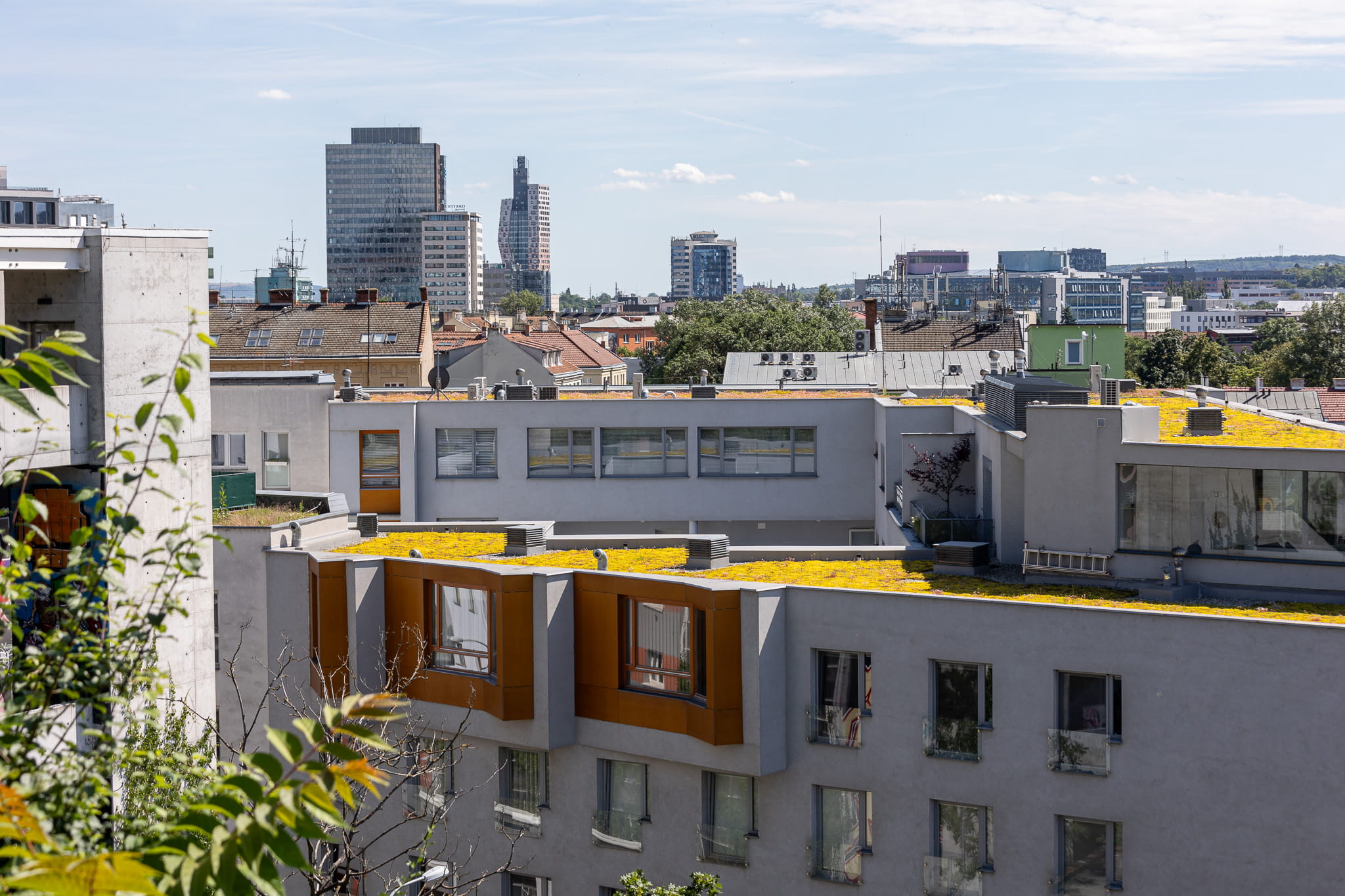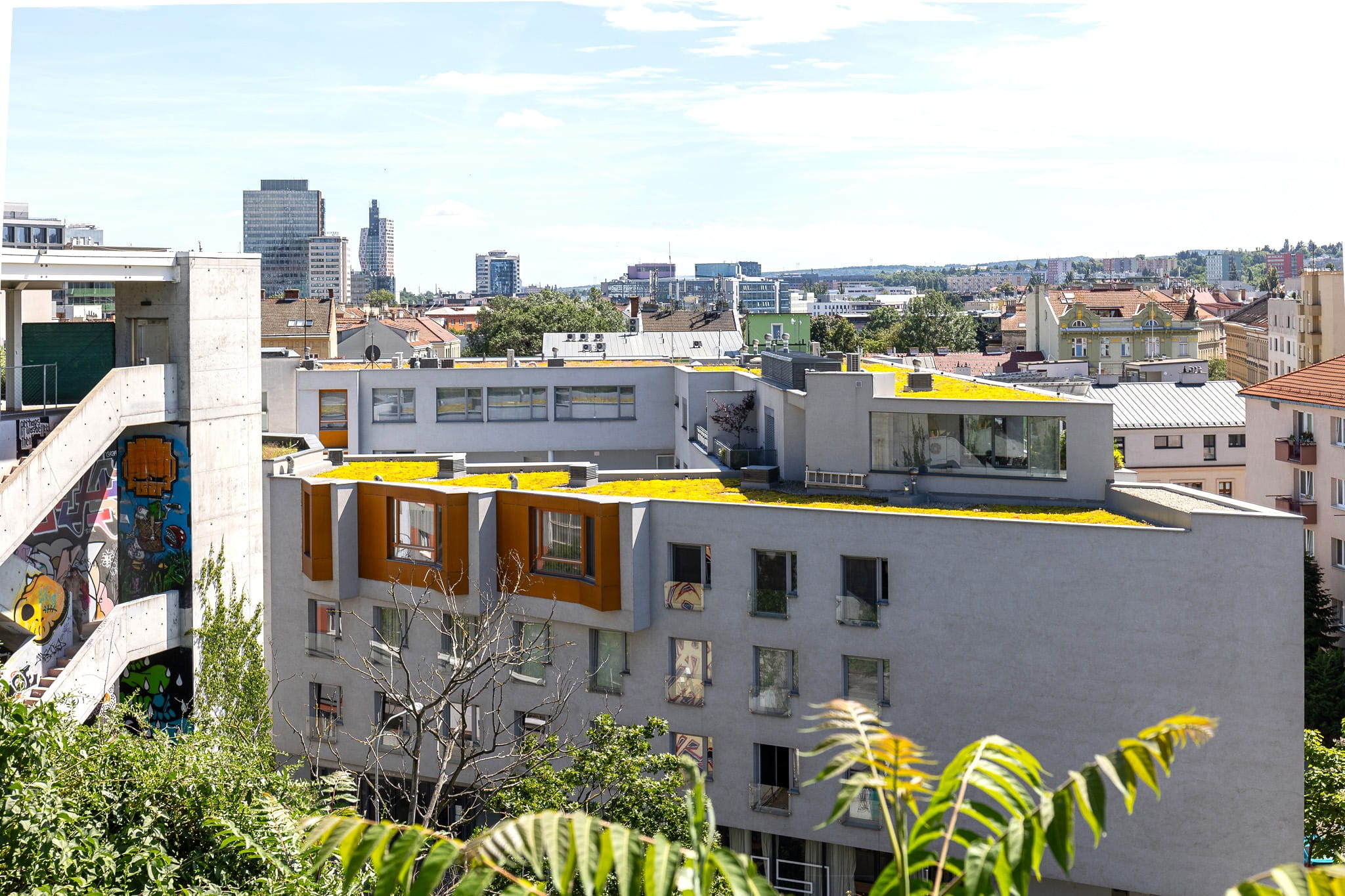Zelená střecha na ulici Kopečná v Brně