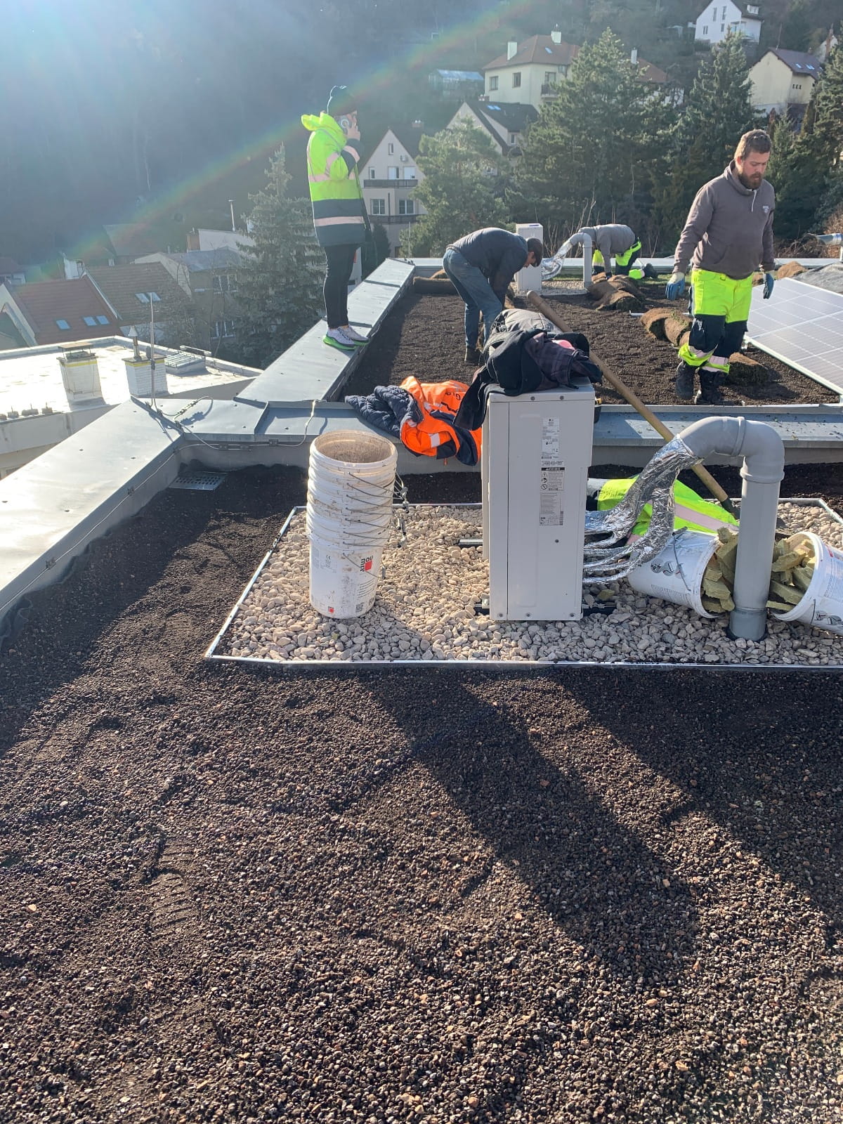Zelená střecha pro 3 domy Brno